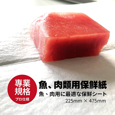 專為鮪魚與魚肉設計的保鮮紙,有效吸收多餘水分與血水,保持色澤與鮮度,是專業餐廳與水產業指定使用耗材。